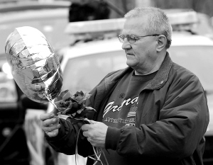 | 4月4日,在美国纽约州宾厄姆顿市,一名当地居民拿着鲜花和气球前往美国公民协会悼念枪击案遇难者。 新华社记者申宏摄 |