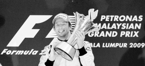 新华社吉隆坡4月5日电 5日进行的F1马来西亚站正赛遭遇了暴雨侵袭,致使比赛进行过半后被迫提前结束。杆位发车的布朗GP车队英国车手巴顿(见上图,新华社发)“幸运地”获得第一。