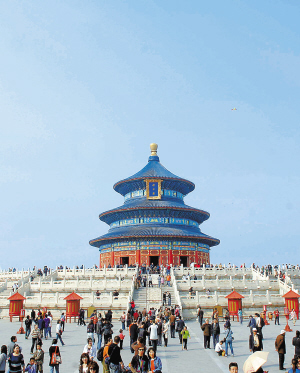 游客在北京天坛参观游览。 清明节小长假期间,外地进京游客明显增多,加之许多北京市民在京游,共同带动北京旅游市场升温。据统计,清明节小长假期间,北京共接待国内旅游者203万人次,同比增长10.1%;旅游总收入8.1亿元,同比增长11.3%。 新华社记者 公磊 摄