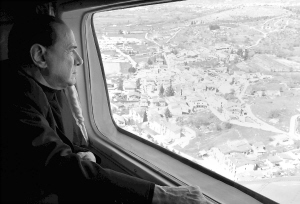| ↑意总理贝卢斯科尼乘飞机飞临地震灾区上空。 |