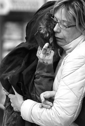 | ↑受灾的人们相互安慰。