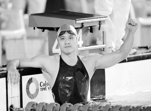 本报讯 “我的目标是接近菲尔普斯,然后战胜他!”6日,在男子50米蝶泳上夺冠并打破亚洲纪录后,广东老将周嘉威(见下图,新华社发)亮出了自己的目标。