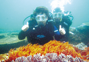 | 在蜈支洲岛潜水,让游客零距离感受海底世界的美妙。 本报记者 李英挺 摄 |