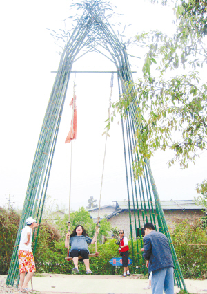 清明节放假期间,每天到这里荡秋千的游客络绎不绝。 在与缅甸接壤的云南省德宏傣族景颇族自治州瑞丽市姐相乡,有一个叫银井的自然村寨。国境线横穿该自然村,银井村民在寨子中央中方一侧设置了一座秋千。游人乘坐这座秋千,只需轻轻一荡,便可体验瞬间“出国”的快乐。 新华社记者 陈海宁 摄