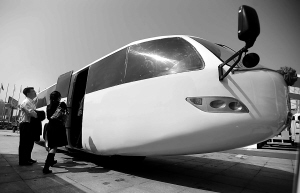 4月8日,参观者在参观52座菱形客车。当日,2009长株潭装备工业配套合作洽谈会在长沙开幕,由湖南大学和湖南同心实业股份有限公司自主研发制造的两台菱形客车成为洽谈会的焦点。菱形客车采用柴油动力,底盘呈菱形,具备阻力小、转弯半径小、碰撞安全性高等特点,目前厂家计划将这种客车批量生产投入市场。新华社记者 李尕 摄