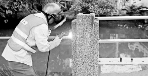 | 施工人员维修损坏的护栏。本报记者 李英挺 摄 |