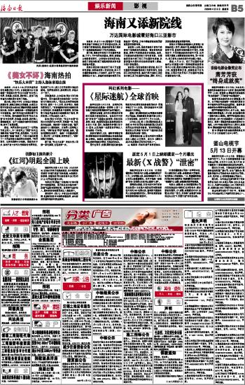 海南日报 娱乐新闻 013 2009-04-091 2009年04月09日 星期四