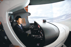 4月8日,在湖北蔚蓝航校襄樊飞行基地,学员在飞行仪上进行模拟飞行。 当日,湖北蔚蓝航校获得了民航管理部门颁发的民用航空器驾驶员学校临时合格证,成为华中地区第一家从事通用航空“私用或商用飞行驾驶执照培训”项目的民航飞行员培训机构。 新华社发(周超 摄)