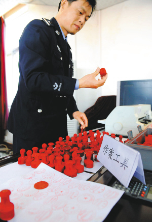 近日,南昌市公安局宣告破获一起特大制造销售假发票系列案。警方收缴各类假发票共计1354本(32986份),面值总额达21.2亿元,收缴伪造公章78枚。目前,警方已抓获犯罪嫌疑人11人,其中6人被刑拘。 新华社发