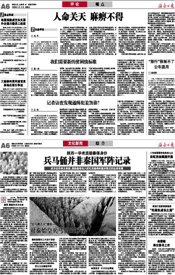 还有青铜剑埋在地下2000多年为什么没有生锈,拿起来还闪闪发光?专家也做了各种各样的测试,到现在没有得出信服的结论。秦俑在科学技术上有很多谜值得我们进一步的探讨。 (夏明勤 任思哲)
