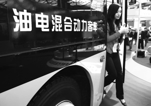 4月9日,观众正在参观一辆油电混合动力客车。近日,世界客车博览亚洲展览会在上海新国际博览中心举行。海内外各家制造商推出的新能源客车和各类节能技术成为本届展会的一大亮点,吸引了众多买家的关注。 新华社发