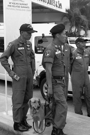 | →4月9日,在东盟与对话国系列峰会举办地泰国中部海滨小城帕塔亚,警察在执行任务。 新华社发 |