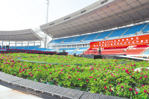 | 4月9日,世界邮展开幕式会场鲜花簇拥。 新华社发