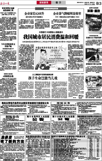 海南日报 财经新闻 011 2009-04-101 2009年04月10日 星期五