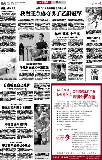 海南日报 体育新闻 014 2009-04-101 2009年04月10日 星期五
