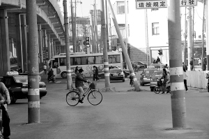 4月10日,车辆穿行在密密麻麻的电线杆之间。在合肥市四里河立交桥下,电线杆密密麻麻,车辆穿行其间如同走“梅花桩”。 新华社发(杨晓原 摄)