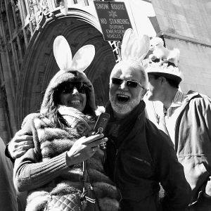 12日,在美国纽约曼哈顿的第五大道,两名市民参加复活节大游行。当日,人们用象征春天和再生的彩蛋、鲜花、小动物造型的饰品装扮自己,庆祝节日。 新华社发