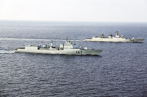 中国海军两批护航编队亚丁湾会师