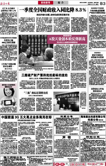 海南日报 财经新闻 011 2009-04-141 2009年04月14日 星期二