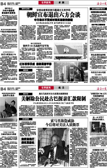海南日报 世界新闻 012 2009-04-151 2009年04月15日 星期三