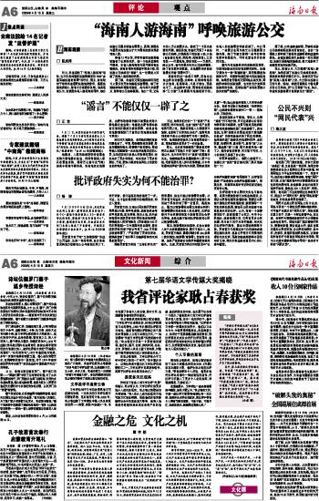 海南日报 评 论 006 2009-04-151 2009年04月15日 星期三