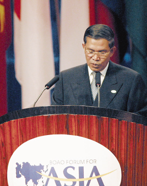 柬埔寨首相 在区域经济一体化的过程中,每一个国家都需要真诚的伙伴关系;要以一种分享利益和相互信任的精神一起前进,这是东亚和东南亚共赢战略的原则。