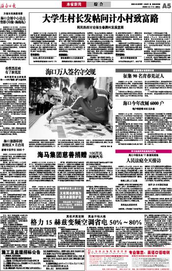 | 海南日报 综 合 005 2009-04-171 2009年04月17日 星期五 |