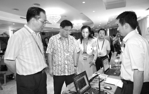 下午3时45分,各媒体工作人员正在论坛新闻中心紧张工作。王国庆、谭力询问了现场媒体工作人员的工作安排情况,对采编人员的辛勤劳动表示感谢,并希望大家全力以赴做好论坛年会报道。随后,王国庆、谭力又走访了在“银河”俱乐部驻点的媒体单位,了解论坛报道准备情况。