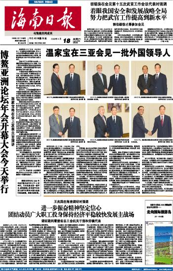 | 海南日报 头版 001 2009-04-181 2009年04月18日 星期六 |