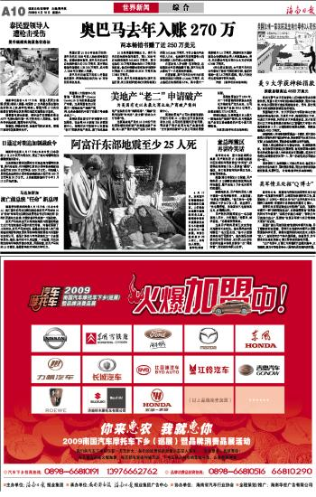 | 海南日报 世界新闻 综 合 010 2009-04-181 2009年04月18日 星期六 |