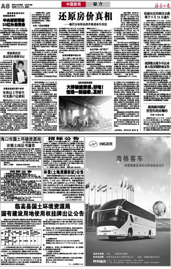 | 海南日报 中国新闻 综 合 008 2009-04-181 2009年04月18日 星期六 |