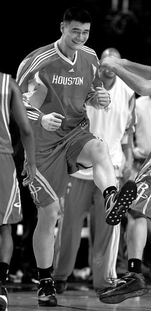 | 球队大胜,姚明满脸笑容。新华社发 |