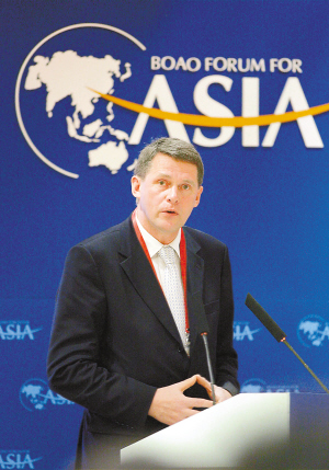 | 4月19日,博鳌亚洲论坛“以‘绿色新政’带动‘绿色经济’”主题午餐会举行。这是芬兰总理万哈宁在午餐会上演讲的情景。