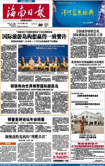 海南日报 头版 001 2009-04-201 2009年04月20日 星期一