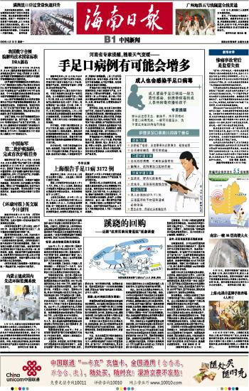 海南日报 中国新闻 009 2009-04-201 2009年04月20日 星期一