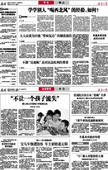 海南日报 评 论 004 2009-04-221 2009年04月22日 星期三