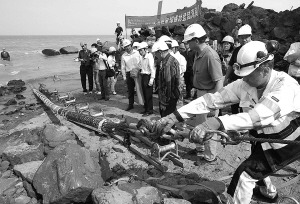 | 3月17日,海南跨海联网工程首根海底电缆在澄迈县桥头镇林诗岛顺利上岸。