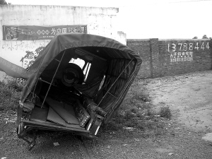 | 被撞坏的农用三轮车。 本报记者 林伟 摄
