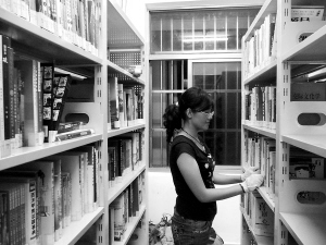 | 在刚成立的海南省图书馆西沙分馆里,省图工作人员正紧张地把图书归类上架。 本报记者黄晶 摄 |