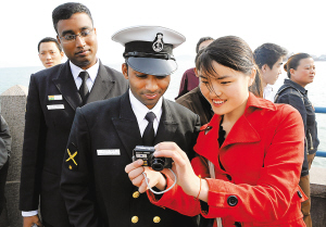 随着多国海军活动在青岛的举行,青岛港区附近的中山路、即墨路、栈桥等地不时可见各国海军官兵的身影,他们利用闲暇之时走出军港逛街购物、看景点、品小吃,尽情享受做客中国的快乐。
