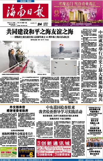 海南日报 头版 001 2009-04-241 2009年04月24日 星期五