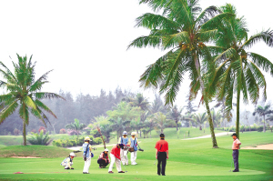 一季度,我省旅客吞吐量增长一成,4月份,这种良好的势头得到保持。记者近日在我省各地拍回一组镜头。 ①高尔夫球手在文昌挥杆。本报记者 王凯 摄 ②游客在三亚大东海戏水。 本报记者 张杰 摄 ③老外骑车乡村游。 本报记者 王军 摄
