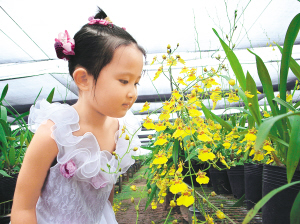 步行在兰花基地的大棚间,细细寻幽探香,人的心情格外愉悦。不同品种的兰花,令人目不暇接,尤其是纹样复杂的文心兰,“身材”高挑,微风一吹就动感十足的跳舞兰,还有红艳似火的“满天红”(蝴蝶兰的一种),叫人叹为观止。