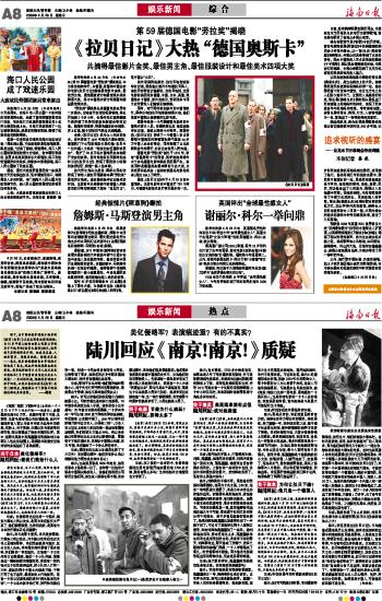海南日报 娱乐新闻 008 2009-04-261 2009年04月26日 星期日