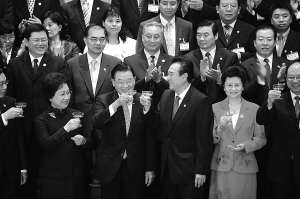 | 4月26日,签字仪式后双方举杯庆贺。 新华社记者 韩瑜庆摄 |