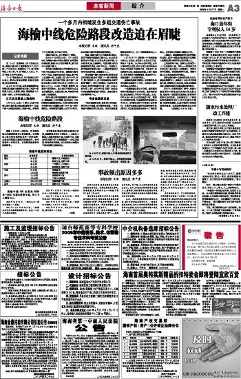 海榆中线危险路段改造迫在眉睫