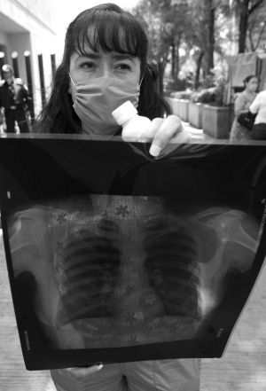 4月26日,在墨西哥首都墨西哥城,45岁的玛丽亚走出国家流感疾病研究中心。当日,玛丽亚在该研究中心接受检查后被认为有可能是A/H1N1型猪流感病毒携带者。 新华社发(戴维摄)