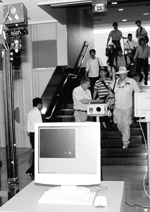4月28日,柬埔寨金边国际机场的工作人员引导抵柬乘客通过体温检测仪器。当天,柬埔寨卫生部开始采取在机场安装体温检测仪器等措施,预防猪流感疫情传入柬埔寨。新华社发
