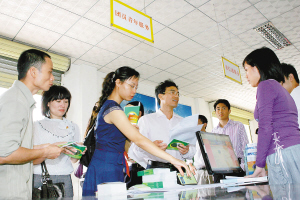 | 4月28日,在海口市龙泉镇便民服务中心的“团员青年服务”柜台前,年轻人正在咨询了解相关的团务信息。利用当地便民服务中心设立团员服务柜台的做法,在全省率先开创了共青团服务窗口化办理的先河。 本报记者 张杰 摄 |