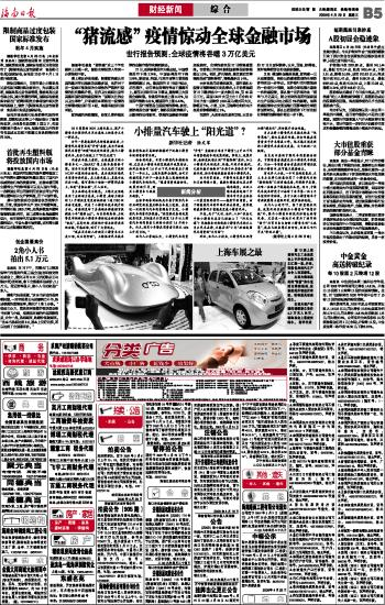 海南日报 财经新闻 综 合 013 2009-04-291 2009年04月29日 星期三